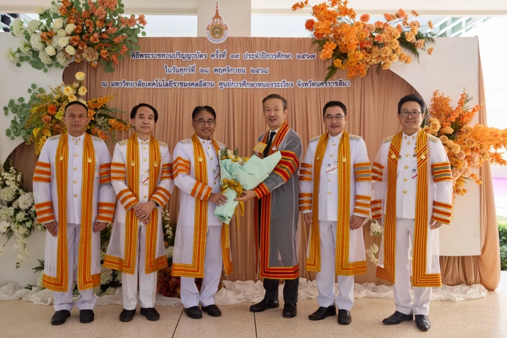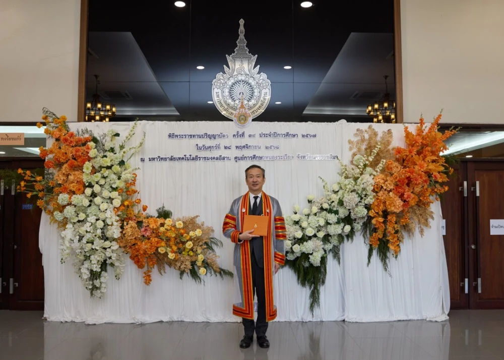 On 28 November 2025, His Majesty the King graciously appointed General Surayud Chulanont, President of the Privy Council, as His Majesty’s representative to confer degrees upon graduates of Rajamangala University of Technology Isan (RMUTI) for the academic year 2024. Mr. Chaiwat Kovavisarach, Group Chief Executive Officer and President, Bangchak Corporation Public Company Limited, was conferred the Honorary Doctor of Engineering (Eng.D.) in Electrical Engineering. Mr. Chaiwat received an honorary doctorate in recognition of his exemplary professional achievements, integrity, ethical leadership, and dedication to public service. He has made significant contributions to the university and has continuously advanced the nation through his work. His leadership has driven Bangchak Group’s growth through expansion across diverse energy businesses, leading the national energy transition, and delivering impactful social contributions widely acknowledged both domestically and internationally. The Royal Commencement Ceremony was held at the Chalermprakiat Building, Nong Rawiang Education Center, RMUTI, Nakhon Ratchasima Province.
