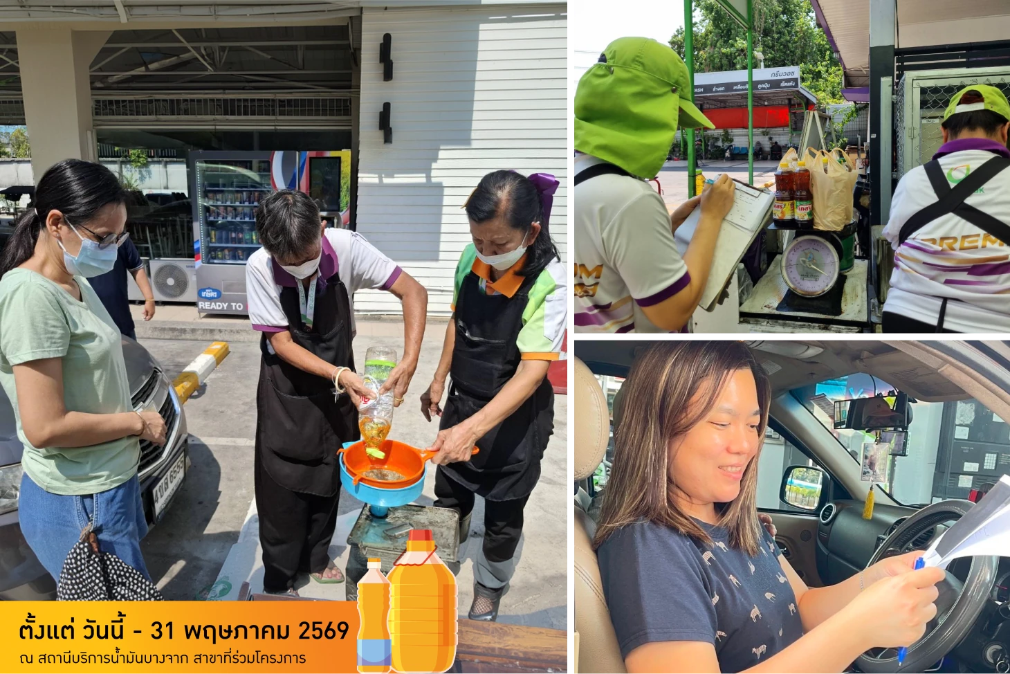 ผู้ที่สนใจสามารถนำน้ำมันปรุงอาหารใช้แล้ว (ไม่เกิน 20 ลิตรต่อท่าน) ที่ผ่านการกรองเศษอาหารและจัดเก็บในภาชนะปิดสนิท มาแลกเติมน้ำมันดีเซล หรือแก๊สโซฮอล์ (เฉพาะเกรดธรรมดา ไม่รวมพรีเมียม) ได้ตั้งแต่เวลา 08.00-17.00 น. ณ สถานีบริการน้ำมันบางจากที่ร่วมโครงการ ในพื้นที่กรุงเทพฯ และปริมณฑล และติดตามรายละเอียดเพิ่มเติมได้ที่ Facebook Bangchak หรือเว็บไซต์ของบริษัทฯ