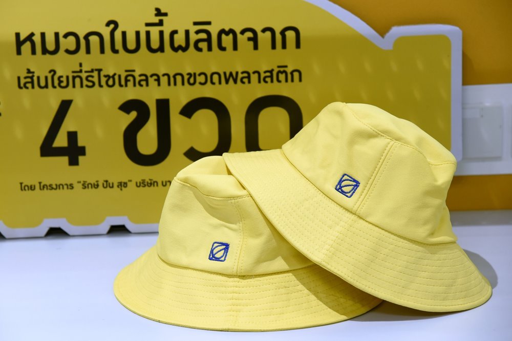 สำหรับหมวกดังกล่าวผลิตจากเส้นใยที่ได้จากการรีไซเคิลขวดน้ำดื่ม หรือขวด PET บริโภคแล้วที่ลูกค้าบางจากและประชาชนนำมาบริจาคผ่านสถานีบริการน้ำมันบางจาก ในโครงการ “รักษ์ ปัน สุข” ตามแนวคิดระบบเศรษฐกิจหมุนเวียน หรือ Circular Economy ที่นำทรัพยากรใช้แล้วมาสร้างมูลค่าเพิ่มหรือหมุนเวียนใช้ใหม่อย่างคุ้มค่าและเกิดประโยชน์สูงสุด โดยโครงการดังกล่าวเป็นความร่วมมือระหว่าง บริษัท บางจากฯ และ อินโดรามาฯ เพื่อเป็นการร่วมลดวิกฤติขยะจากพลาสติก ขยะตกค้างและปริมาณขยะที่เพิ่มมากขึ้น จนส่งผลกระทบต่อมนุษย์และสิ่งแวดล้อมอย่างรุนแรง และเป็นการช่วยอนุรักษ์สิ่งแวดล้อมและแบ่งปันให้สังคม โดยขวดน้ำดื่ม PET ที่รวบรวมได้ จำหน่ายให้อินโดรามา เวนเจอร์ส ซึ่งมีโรงงานรีไซเคิลในจังหวัดนครปฐม นำไปรีไซเคิลเป็นเส้นใยและนำไปผลิตเป็นหมวกเพื่อมอบให้กับเจ้าหน้าที่ฝ่ายรักษาความสะอาดและสวนสาธารณะของกรุงเทพมหานคร