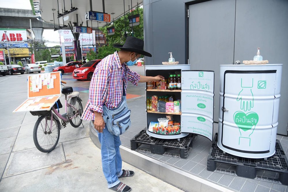 In its latest move, Bangchak has integrated “Pantry of Sharing” concept to its “Bangchak Group Joins Caring Efforts during COVID-19 Crisis” Project through the launch of “Tanks of Happiness”. Under this initiative, 200-liter oil tanks were cleaned, repainted, and changed into “Tanks of Happiness”. They will go up at Bangchak service stations in Bangkok’s Phra Khanong and Bang Na districts, its suburbs, and the compounds of Bangchak’s allies. Not just staff or customers of Bangchak but also interested people will find greater convenience in donating rice, food and other necessities to those in need. The move promotes kindness and mutual support that Thais have long been known for.