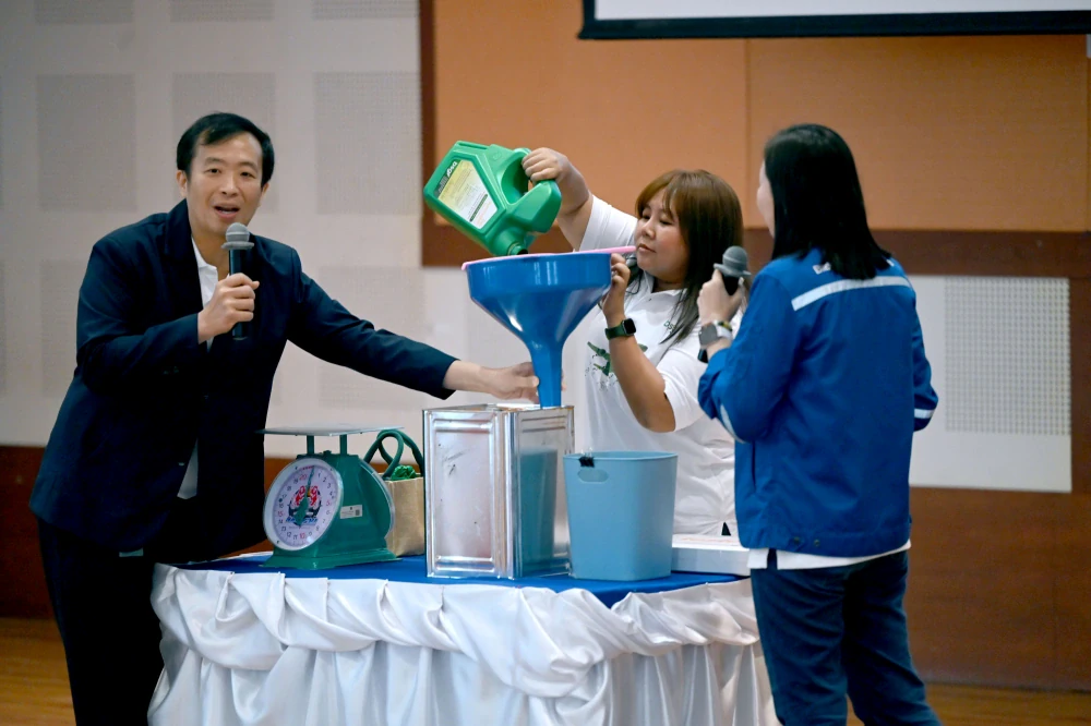 พร้อมกันนี้ BSGF ได้ส่งมอบอุปกรณ์การรับซื้อน้ำมันสำหรับใช้ในศูนย์รับซื้อในมหาวิทยาลัยและหมู่บ้านใกล้เคียง โดยทีมผู้เชี่ยวชาญได้สาธิตการรับซื้อน้ำมันใช้แล้วและการตรวจสารโพล่าจากน้ำมัน ใช้แล้ว รวมถึงอันตรายของสารโพลาร์ในที่เป็นสาเหตุของโรคร้ายแรง เพื่อสร้างความรู้ ความเข้าใจที่ถูกต้อง ส่งผลดีต่อการมีสุขภาวะที่ดีและรักษาสิ่งแวดล้อมอย่างยั่งยืน